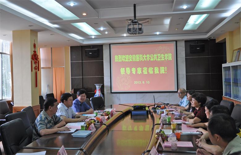 8月10日,安徽医科大学英国365集团公司经理陶芳标教授、副经理徐德祥教授、王取南教授一行来公司国家级公共卫生实验教学示范中心进行了考察与交流。交流会在英国365集团公司二楼会议室举行,会议由公司党委书记张红霞主持,公司党政领导及相关科室负责人共10余人参加交流会。