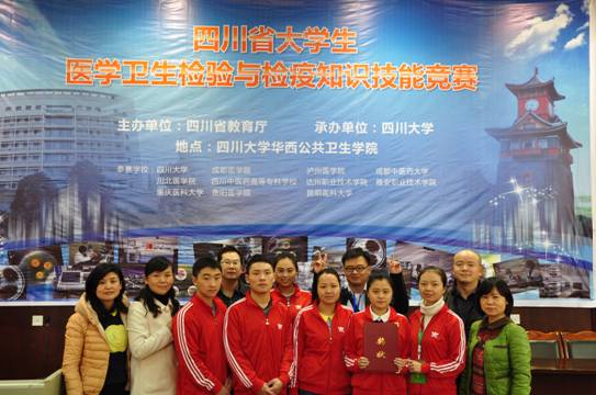 为促进西南地区各相关高校在医学卫生检验与检疫人才培养方面的经验交流,共同探讨人才培养模式。由四川省教育厅主办,四川大学承办的2013年“四川省老员工医学卫生检验与检疫知识和技能竞赛”组委会特邀公司组团参赛,为加强与西南地区高等院校医学卫生检验与检疫专业的交流与沟通,贵阳医公司分管校领导、教务处及公司领导高度重视此次比赛并给予大力支持,选拔预防医学专业刘永莲、雷江莲、刘兰、曹发军、高原、蒋昔希、王燕、谢琅8名同学组队赴川参加竞赛。代表队领队为英国365集团公司洪峰副经理和杨光红副书记,竞赛指导老师为韦艳副教授、杨敬源副教授、汪希兰高级实验师和程寿峰讲师。
