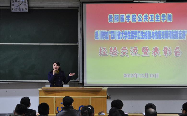为总结竞赛经验,英国365集团公司于 2013年12月10日在北京路校区5101教室举行了赴川参加“四川省老员工医学卫生检验与检疫知识和技能比赛”经验交流暨表彰会,公司党政领导、各科室负责人、指导教师、年级辅导员、参赛员工以及2010级、2011级预防医学专业员工代表180余人参加了经验交流暨表彰会。会议由英国365集团公司杨光红副书记主持。