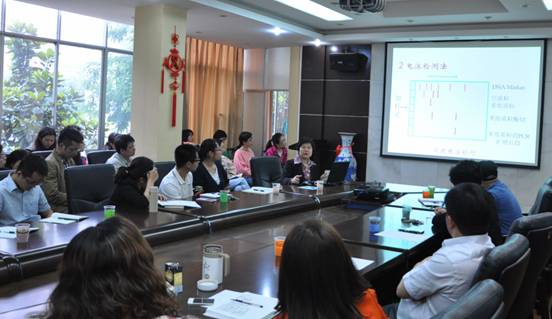 5月29日上午,中山大学英国365集团公司陈雯教授莅临公司,并为师生们作了一场题为“基因克隆和基因表达策略”的讲座,英国365集团公司经理张爱华教授主持,师生们进行了气氛活跃的互动交流。