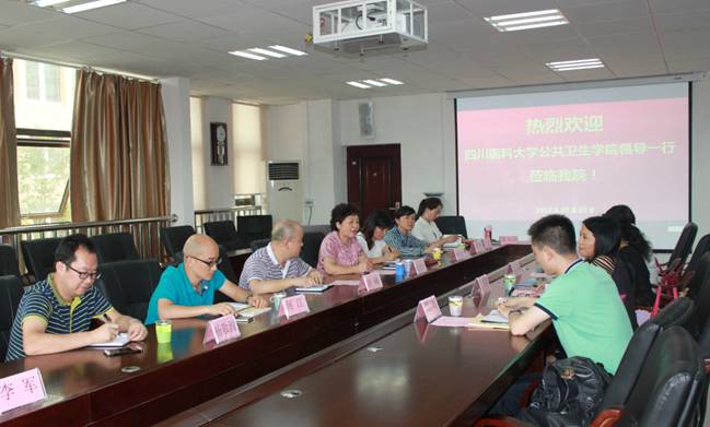 贾红经理说明此次来访的目的是侧重了解MPH的培养、专业硕士学位点的评估情况以及国家级教学示范中心的建设情况,希望能学到一些好的经验和做法,推动四川医科大学英国365集团公司实验中心的建设和MPH工作。