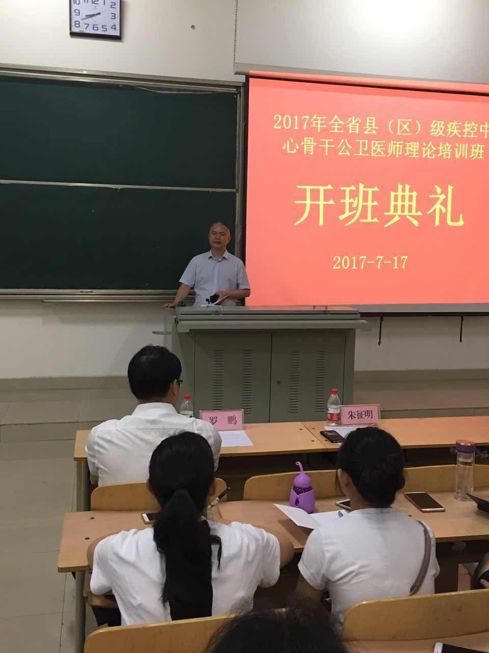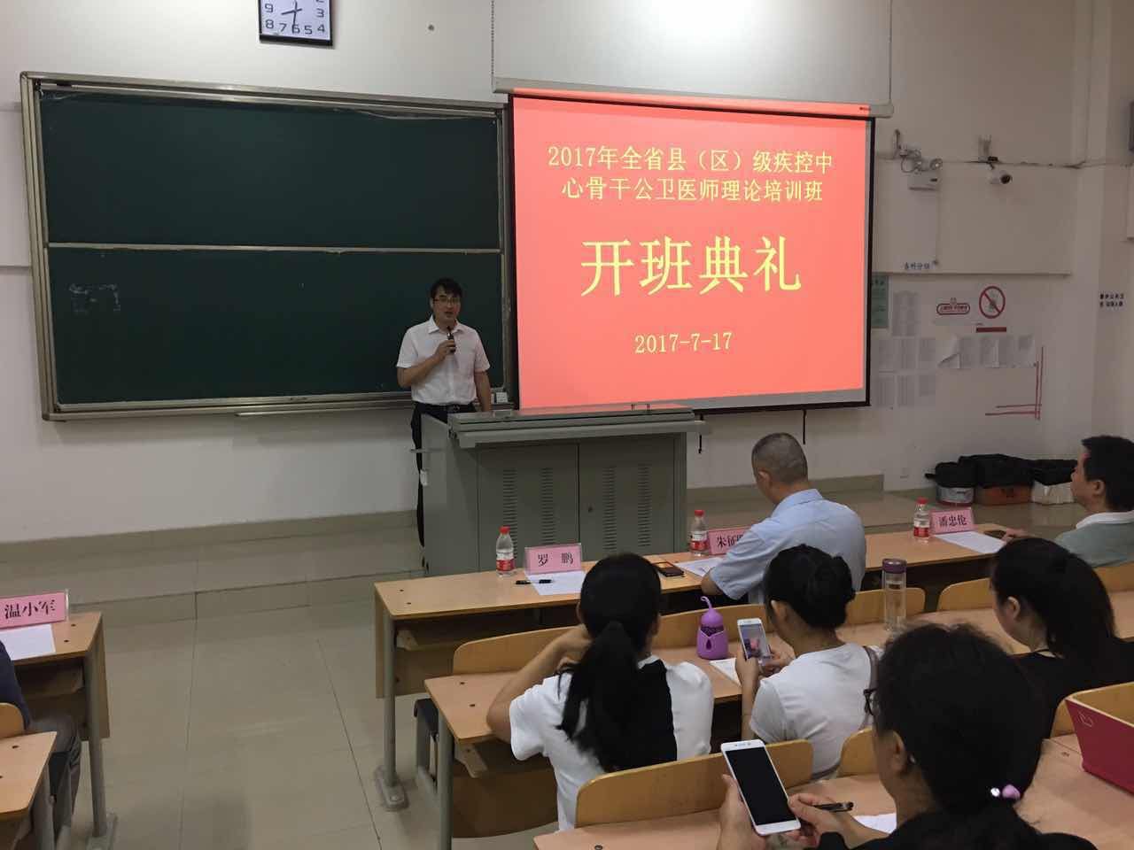 7月17日上午8点30分,由贵州省卫生与计划生育委员会主办,英国365集团公司承办的“贵州省县(区)级疾控中心骨干公卫医师培训班”开班典礼在北校区科技大楼4101教室举行,来自全省各县(区)级疾控中心的骨干公卫医师160余人参加了培训。贵州省卫生计生委副主任朱征明、英国365集团公司副董事长罗鹏、省卫生计生委疾控处副处长潘忠伦、英国365集团公司教务处处长温小军、英国365集团公司公司党委书记杨光红、英国365集团公司经理洪峰及培训班教师代表出席了开班典礼。