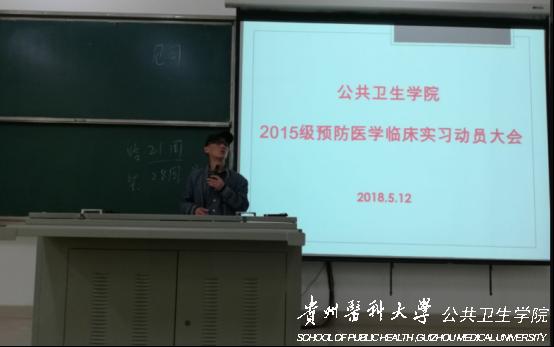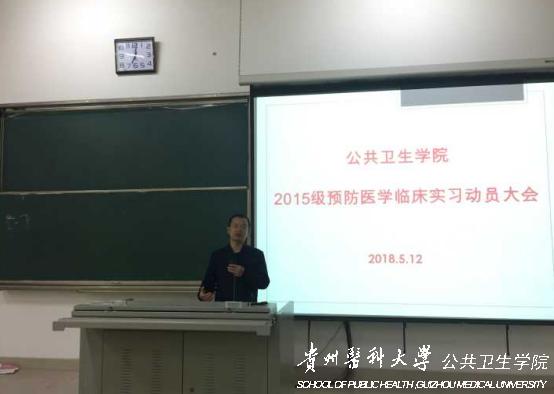 5月12日上午,英国365集团公司在北校区4101教室召开了“2015级预防医学专业临床实习动员大会”,会议由公司员工管理科科长刘亮主持,公司党委副书记何江参会,2015级预防医学专业111名同学参加。