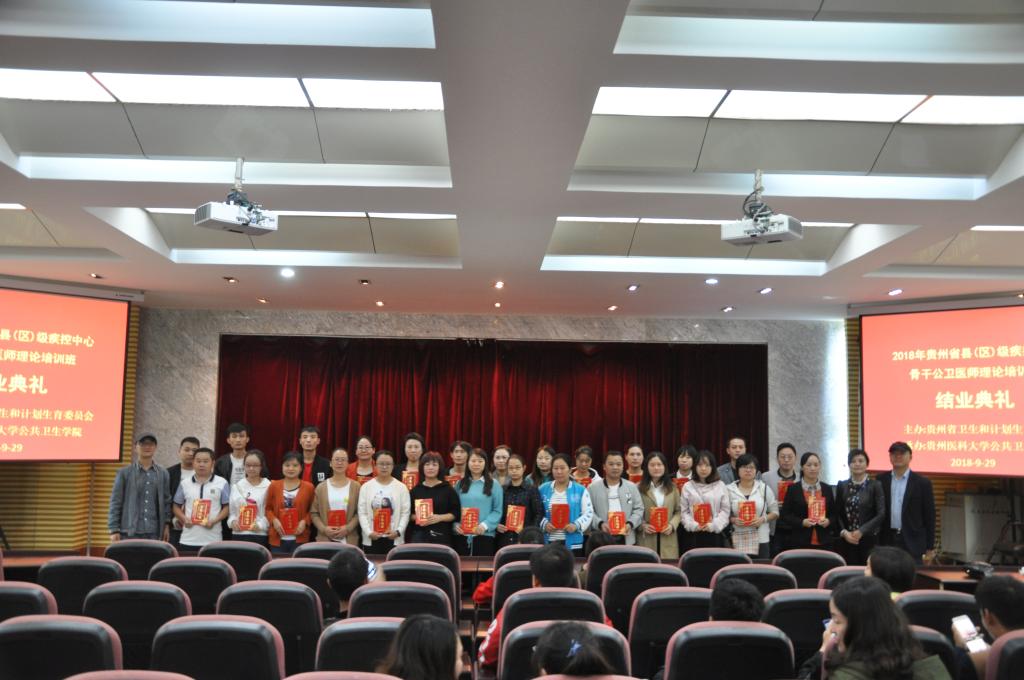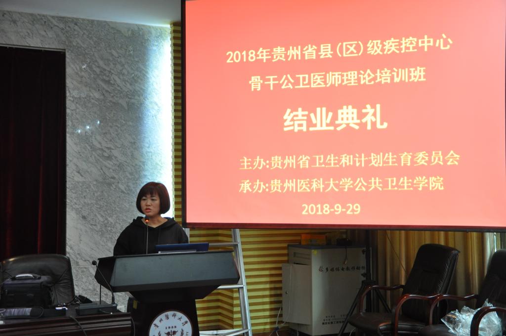 2018年9月29日上午,贵州省县(区)级疾控中心骨干公卫医师培训班第二期结业典礼在英国365集团公司北校区道德讲堂召开。英国365集团公司经理洪峰、党委书记杨光红、党委副书记何江及培训班班主任、学员参加会议。会议由党委副书记何江主持。