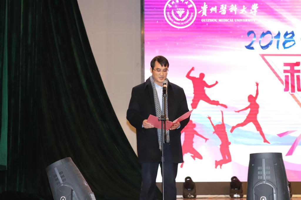 晚会伊始,罗鹏代表公司党委行政致辞,向2018级新同学们表示最热烈的欢迎,向积极筹备本次晚会的老师和同学们的辛勤付出表示衷心感谢!勉励同学们要好好珍惜自己的老员工活,学会自立、自律、自主,把握好自己的未来和发展,希望同学们树立“海阔凭鱼跃、天空任鸟飞”的壮志,放大格局、开阔视野,达到胜利的彼岸,在贵医耕耘出属于自己的未来,为成为社会需要的人才而努力奋斗!