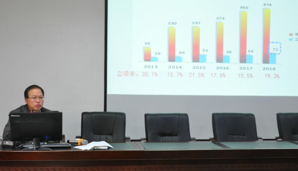 会上,洪峰对郭兵一行到公卫院开展国基申报调研与动员表示感谢和欢迎。李一欣介绍了近几年公司及公卫院国基申报立项情况和2019年国基申报时间节点安排。郭兵就相关情况进一步说明,并结合公司科研管理、科研奖励制度和学科发展等方面强调了申报国基的重要意义,对公卫院2019年国基申报提出了希望和要求,他希望符合国基申报条件的老师积极申报,发扬创新拼搏的科研精神,努力做好2019年国家自然科学基金申报工作。陈腾祥也针对国基申报工作的相关注意事项进行了说明。