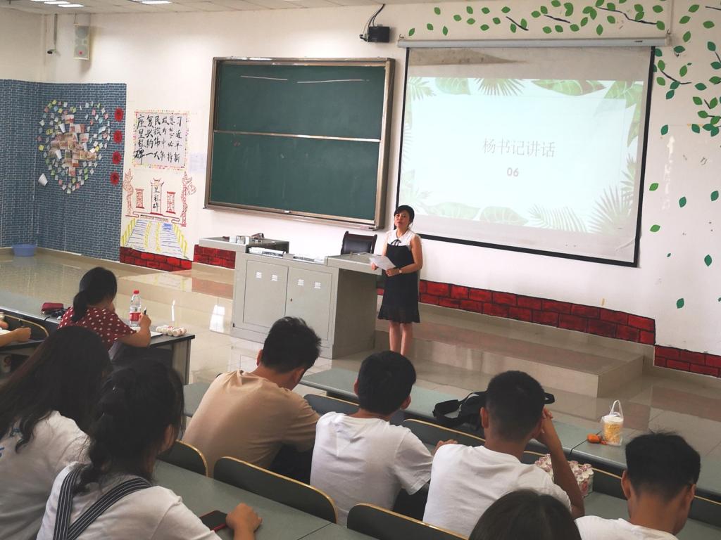 【马克思主义公司党委书记、经理杨成兰与2018级食品卫生与营养学班】6月19日杨成兰在2018级食品卫生与营养学班级召开的“大学里你成长了”主题班会上,与同学们分享了自己对青春的看法以及大学最深刻的记忆,鼓励同学们勇于承担自己的责任,多方面培养自己的能力,不负韶华,勇于尝试,青春就是用来努力奋斗的。