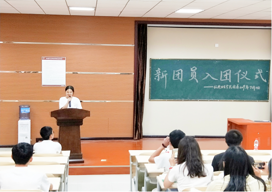 之后,入团介绍人简易同学宣读了《团章》中有关团员义务和权利的相关条款。刘富达同学和黄龙平同学分别作为新团员代表和优秀团员代表发言,希望全体团员要继续传承五四精神,发奋学习、积极进取,以实际行动践行自己的入团誓言,不能只在形式上入团,更要从行动上入团,新老团员之间要相互勉励,争取更大的进步和提高。