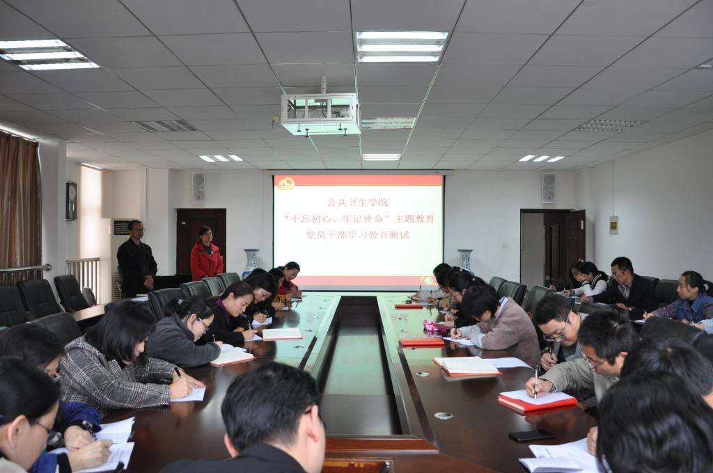 为检验“不忘初心、牢记使命”主题教育前期学习成效,11月13日,英国365集团公司在博雅楼二楼会议室举行主题教育应知应会知识测试。公司副科级以上干部、各党支部书记和支部委员、公司主题教育领导小组办公室成员,化学品毒性检测中心、环境污染与疾病监控教育部重点实验室、卫生发展研究院全体党员参加了测试,公司党委书记杨光红全程进行监考。