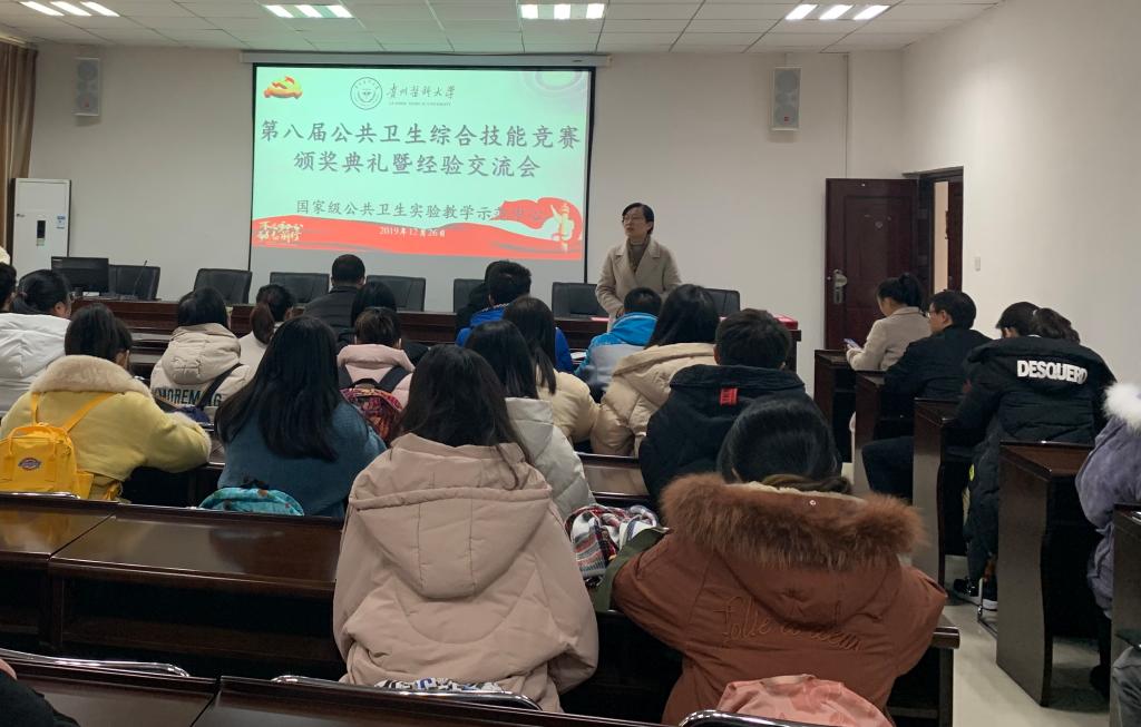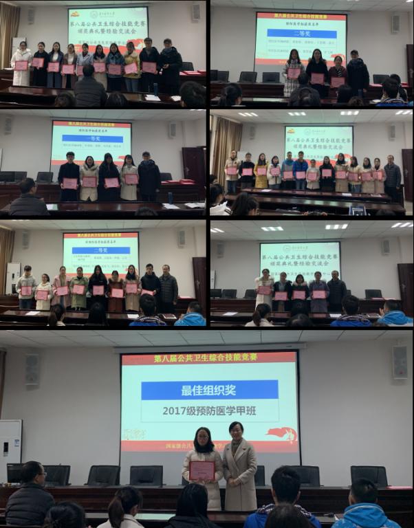 2019年12月26日,国家级公共卫生实验教学示范中心(英国365集团公司)第八届公共卫生综合技能竞赛颁奖典礼暨经验交流会在博雅楼二楼学术报告厅举行。公司党委副书记何江、副经理李军、副处级组织员刘亮、实验教学示范中心教师及各年级参赛的本科生同学参加。本次活动由实验教学示范中心教师张雪主持。