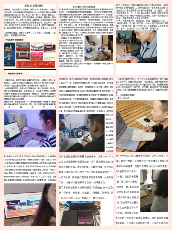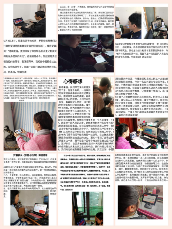 为了打好这场“没有硝烟的战争”,中国在疫情防控中敢于为全社会按下暂停键的魄力,展示了我国强大的综合国力,折射出中国共产党人超强的组织能力。这一刻,我自豪我是中国人,是中国共产党党员,是疫情防控志愿者。我更加明白共产党人的初心和使命、公卫人的初心和使命、贵医人的初心和使命,那便是为了全人类的健康,我们愿做“逆行者”,在开学不能返校之际做好“修行者”——在家勤奋学习,实现自我提升。