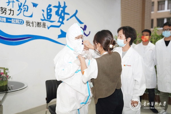 在出征动员大会上,公司党委副书记汤磊为师生志愿者加油鼓劲,感谢师生志愿者能够不惧困难、勇挑重担,充分展现了贵医精神和贵医担当。号召师生志愿者发挥专业优势和素质,把专业课堂搬到抗疫现场,将专业和实战结合起来,高质量完成此次流调工作任务。嘱咐师生志愿者做好个人防护,期待大家凯旋。