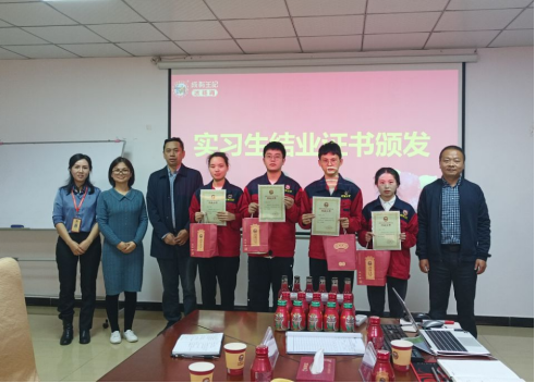 会后,双方对前期在公司实习的员工们进行了工作汇报总结和表彰。