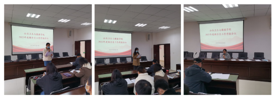 会上,全体辅导员按照年度考核工作要求,围绕辅导员九大职责和中心工作,全面梳理和总结了各自在2022年度的工作成效、特色亮点、问题不足、改进措施及下一步工作计划,分享了各自的收获与体会。