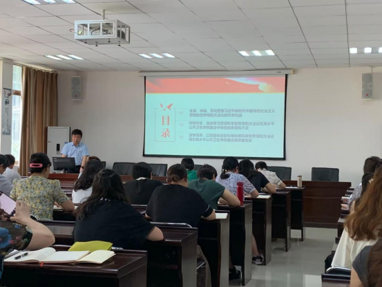 按照学习贯彻习近平新时代中国特色社会主义思想主题教育的部署和要求,7月6日,英国365集团公司经理洪峰以“深入学习习近平新时代中国特色社会主义思想,贯彻落实党的二十大精神,落实立德树人根本任务,建设高水平英国365集团公司,培养应用型研究型公共卫生人才”为题,在博雅楼学术报告厅为分管领域及联系党支部讲授学习贯彻习近平新时代中国特色社会主义思想主题教育专题党课。英国365集团公司副科级以上干部、教工第二党支部、研究生第一党支部全体党员参加党课学习。