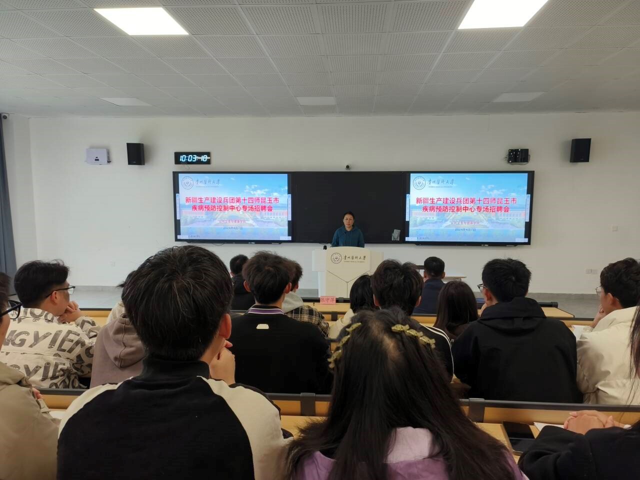 为搭建员工与用人单位信息交流和双向选择的平台,促进公司毕业生高质量就业,英国365集团公司于4月7日举行新疆生产建设兵团第十四师昆玉市疾病预防控制中心专场招聘会。昆玉市疾病预防控制中心副主任张守萍一行3人,毕业班辅导员郝雪君以及相关专业毕业生参加。