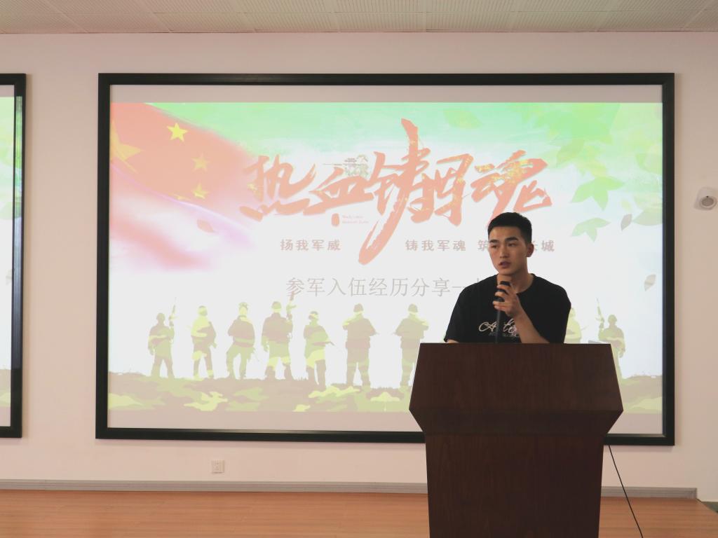 会上,公司2021届药物制剂专业毕业生杨旭(目前就职于公司人才招聘处)、2020届食品卫生与营养学专业毕业生周恩鹏(现就职于公司教学科研管理科)从部队生活、日常训练、优惠政策等方面,生动讲述了自己的参军经历,同时呼吁广大同学响应祖国号召,踊跃参军报国。