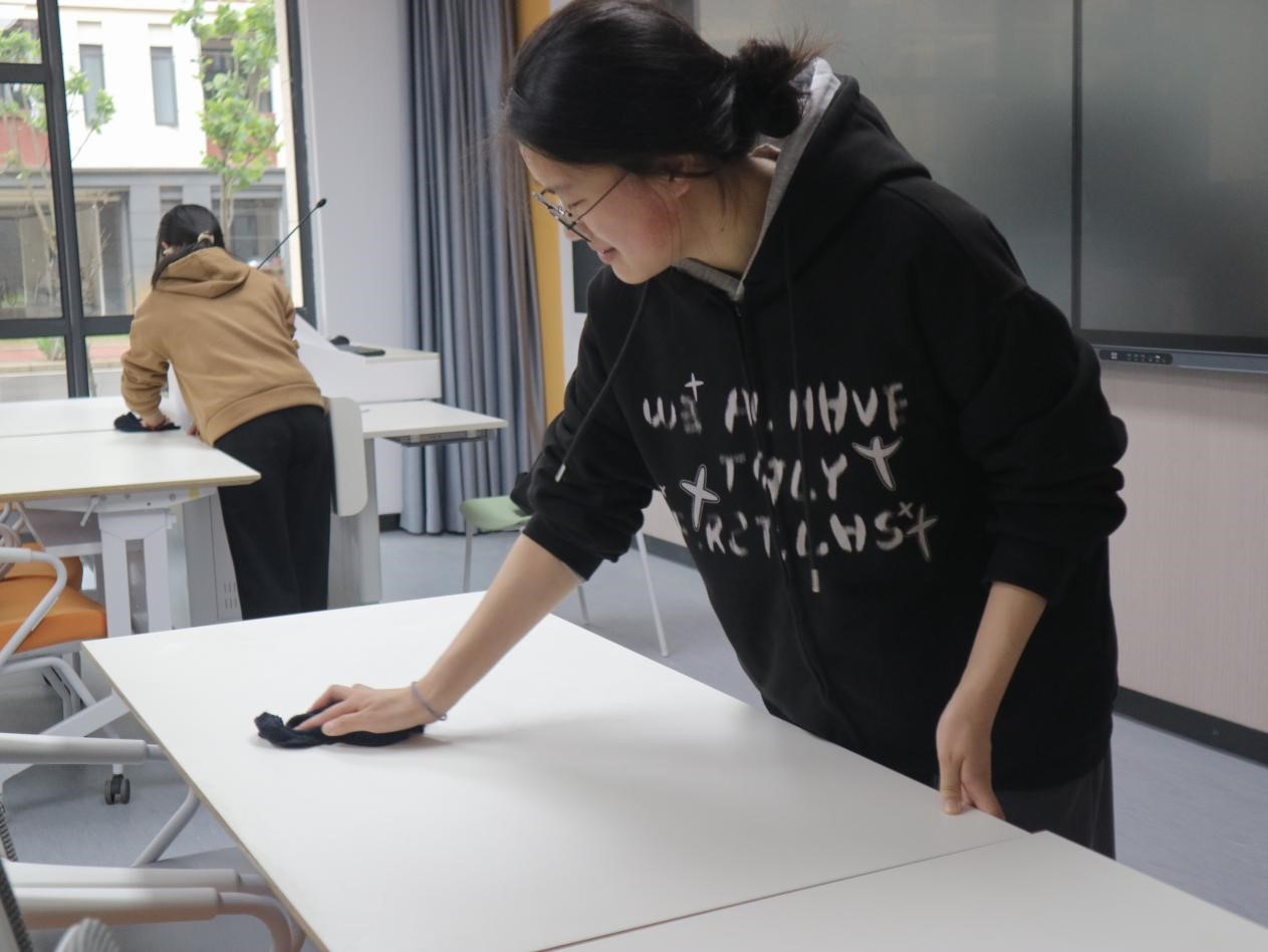 为培养同学们的劳动意识,携手打造干净、整洁的学习环境,5月8日-9日,公卫组团“一站式”员工社区组织百余名同学开展“弘扬劳动精神,践行青年担当”劳动教育主题活动。员工们用自己的双手把组团内的各间教室以及实验室平台做了一次全面的卫生清洁。