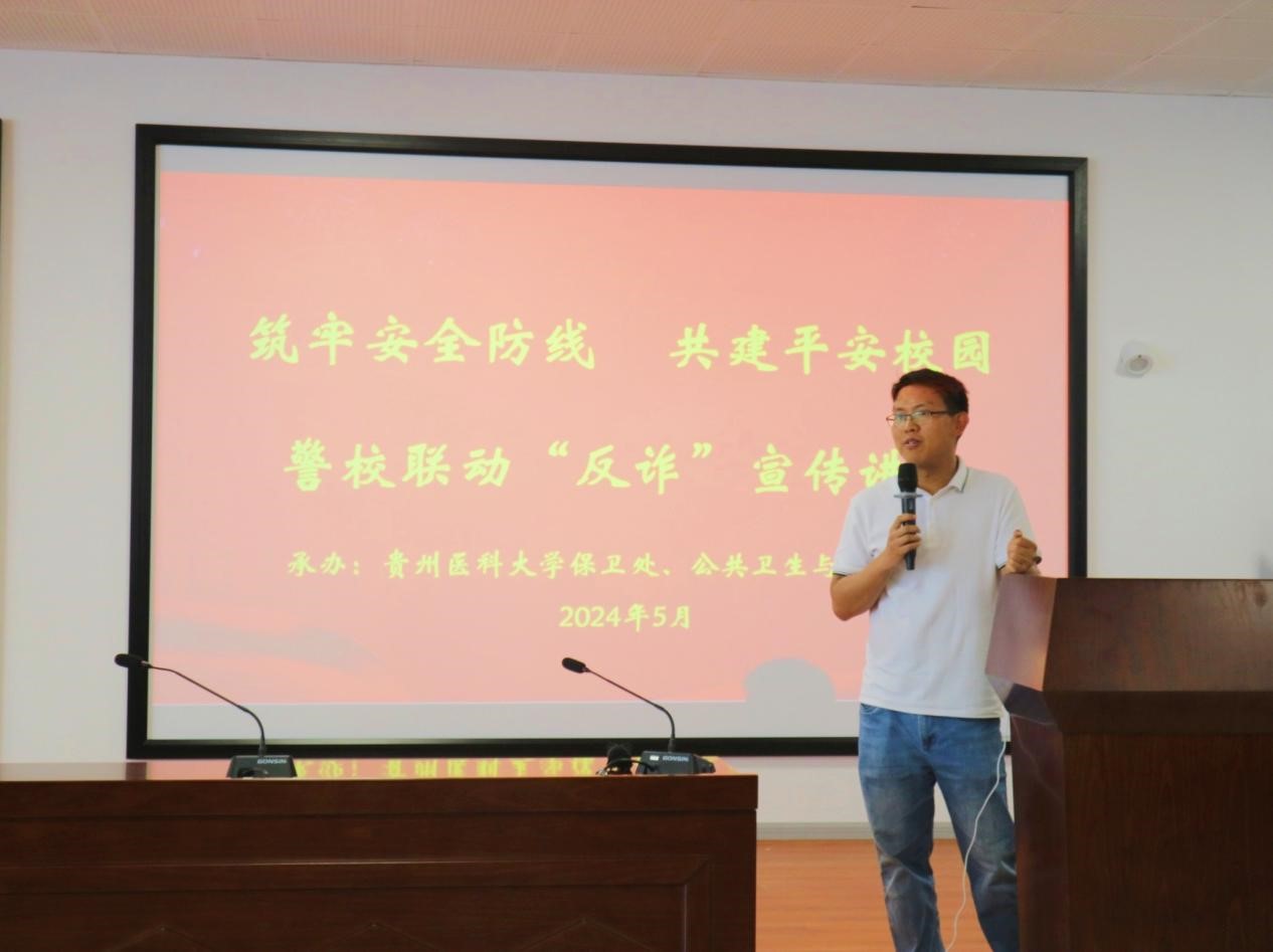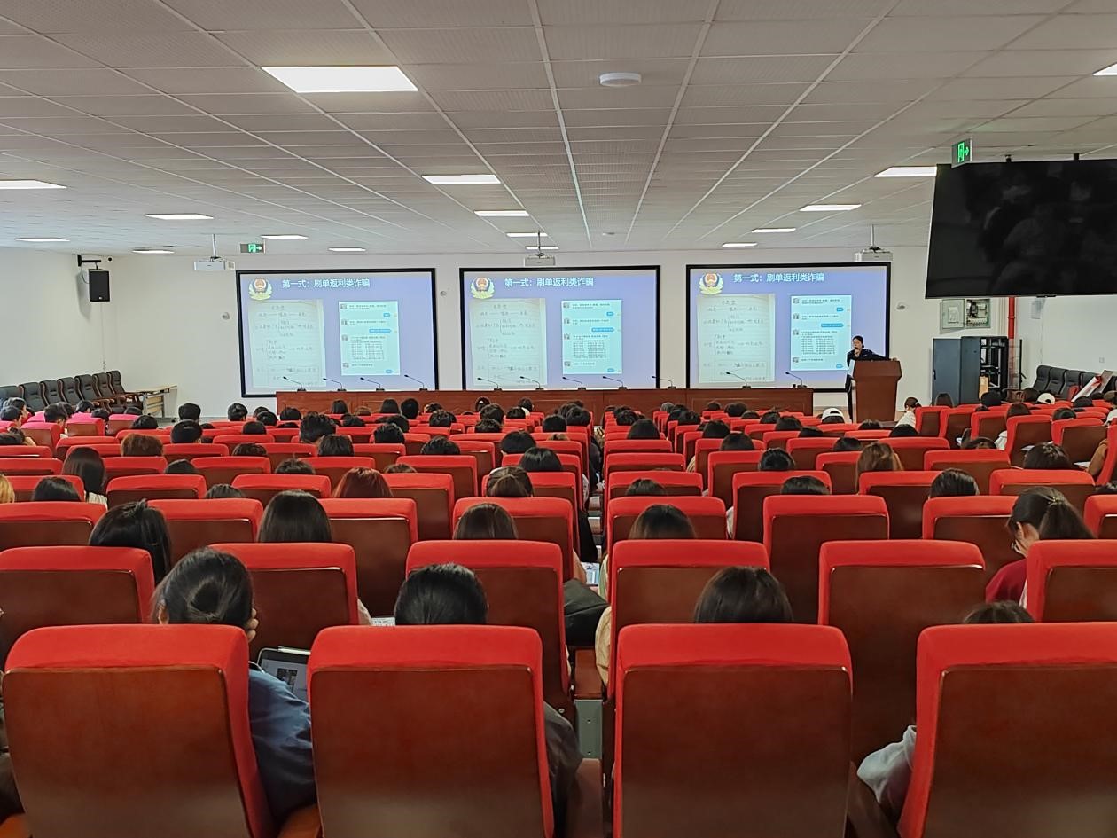 为进一步提高广大师生的反诈意识,增强对电信网络诈骗犯罪的辨别能力和应对能力,全力营造平安和谐的校园环境。5月29日下午,公司联合公司保卫处在云漫湖校区公卫组团C3栋3-16学术报告厅开展警校联动“反诈”宣传讲座。本次讲座邀请贵安新区公安局特警支队潘文娟警官主讲,公司员工科全体辅导员和320余名在校本科生参加。