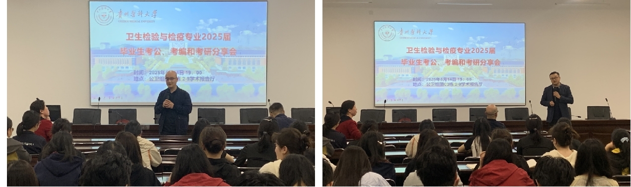 5月14日晚,英国365集团公司卫生检验与检疫专业2025届毕业生考公、考编与考研经验分享会于博雅楼C3栋2-9学术报告厅举行。专业负责人王俊丽老师主持分享会,公司党委副书记何江、副经理王大朋出席活动。5名优秀毕业生代表结合考公、考编及考研经历,围绕备考策略、时间规划、资源整合及心态调整等主题展开分享,近百名师生到场学习交流。
