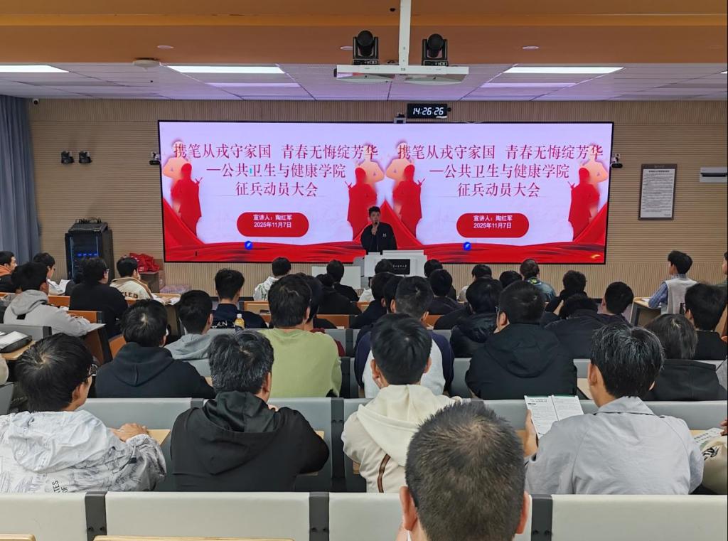 为扎实推进国防动员和征兵工作,激发公卫学子的参军热情。11月7日,2026年征兵入伍动员会在云漫湖校区公卫组团L111S教室召开。公司党委员工工作部国防教育科副科长耿海林、公司员工科副科长原琦、辅导员陶红军及公司各专业适龄员工代表100余人参加,分享会由原琦主持。