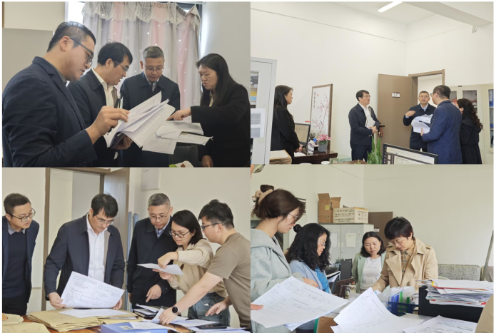 随后各检查小组按照分工到各学系/实验中心进行了评估期间听评课教学资料、近三年试卷档案、毕业论文等教学档案检查。检查过程中,罗鹏和汪志勇亲临现场,认真翻阅每份教学档案,就发现的问题与公司教师进行了深入交流,并指出了明确的整改建议。