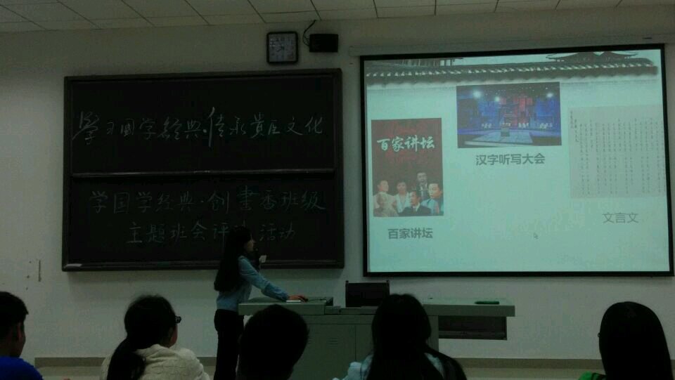 4 24 ,​英国365集团公司“学国学经典·创书香班级”评比活动在花溪校区4404教室举行。公司分团委员工会干部及2013级、2014级各班级各专业70余名同学参加了本次活动。