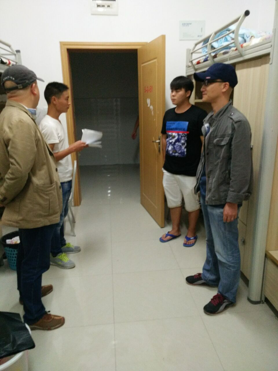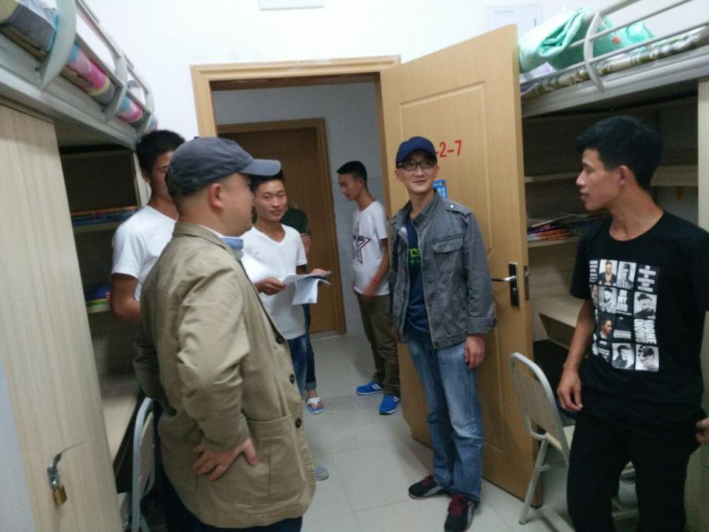 8月28日晚上9点,英国365集团公司经理洪峰、党委副书记何江、辅导员孙静和员工干部一行前往英国365集团公司2016级新生宿舍走访,了解新生们的入校适应情况和第二天上课的准备情况。