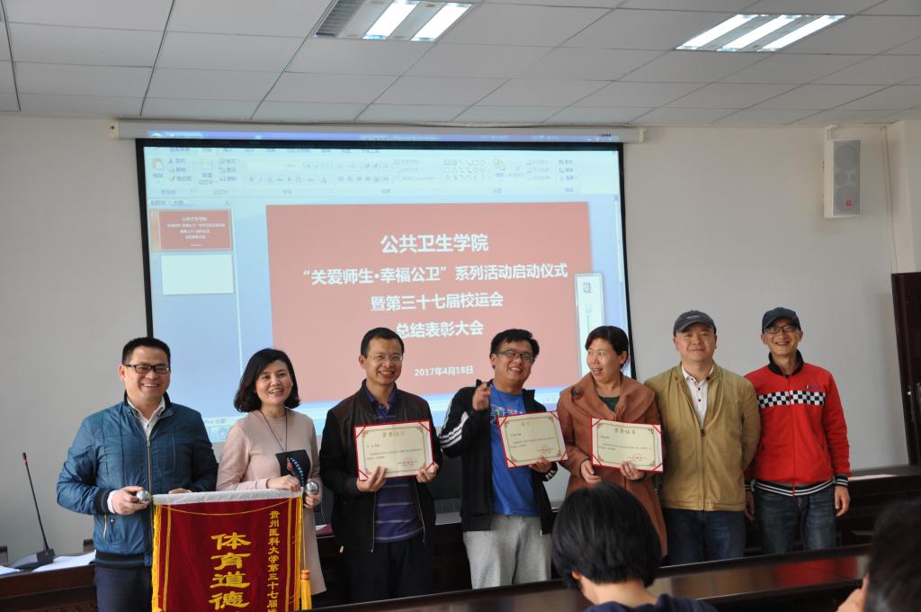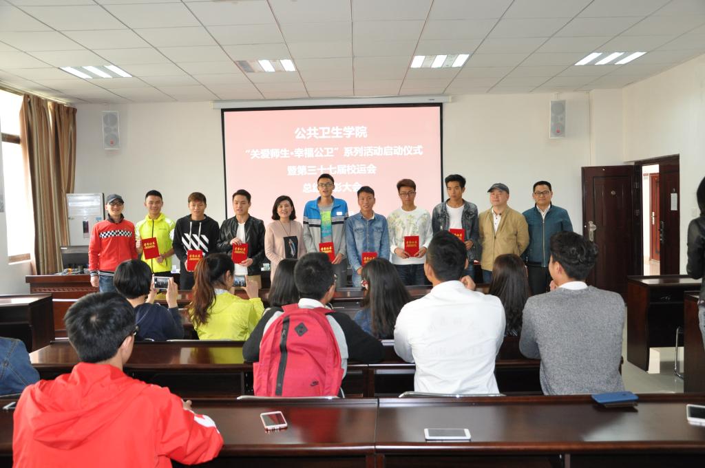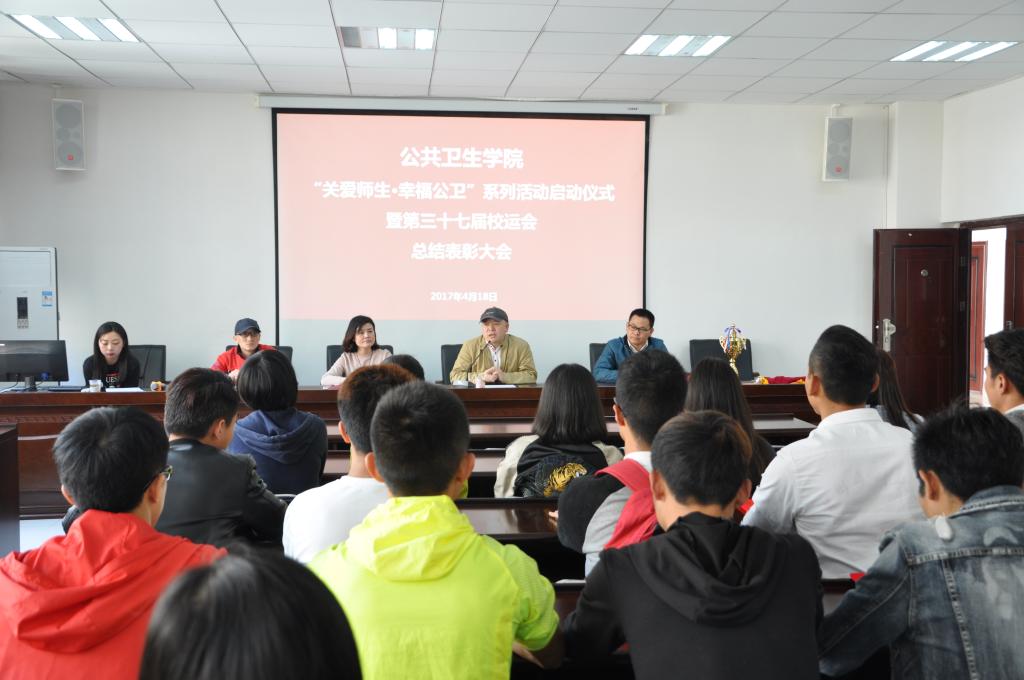最后,洪峰经理作总结发言,他对运动员们积极的参与意识和良好的拼搏精神给予肯定和鼓励,衷心希望老师和同学们能学习与发扬运动员的精神,力争做“身体好、学习好、精神好”的公卫人。