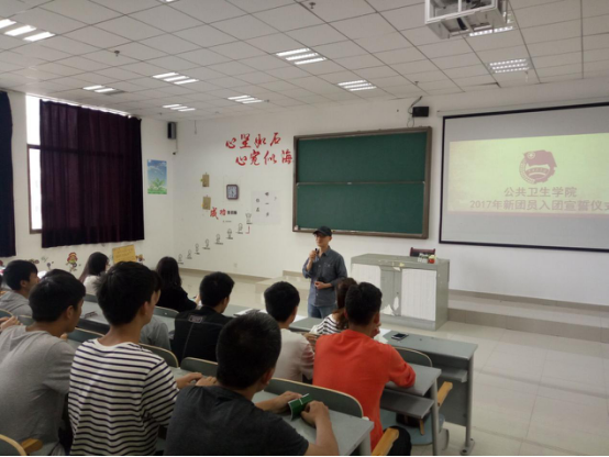 随后,2016级预防医学班团支部书记任飞桦同学向全体新团员宣读了《团员的责任与义务》;2016级卫生检验与检疫专业廖聪同学和2015级预防医学专业团支部的牟佳龄同学分别作为新团员代表、老团员代表进行了发言。纷纷表达了对共产主义青年团的认识和热爱,表明了“不忘初心跟党走”的信心和决心。