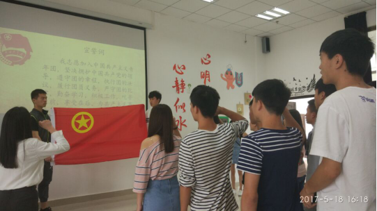 为进一步激励广大青年在新历史时期坚定不移永远跟党走的信念,增强共青团员的光荣感和使命感,充分发挥共青团组织的作用,促进团组织的自身建设,努力成为党的助手和后备军。英国365集团公司分团委于5月18日下午在南校区x4504教室隆重举行“不忘初心跟党走”新团员入团宣誓仪式。入团宣誓仪式由英国365集团公司分团委负责人柴颖老师主持,英国365集团公司何江副书记、周洪媛老师、孙静老师、各班团支部书记和16名新团员参加了此次入团宣誓仪式。