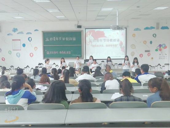 2018年5月8日下午,由英国365集团公司分团委主办的“逐火红岁月,绘青春诗篇”五四青年节诗歌朗诵活动在南校区7503教室举行,共计60余名同学参加,诗朗诵活动评委由主持经验丰富、朗诵能力强的高年级同学担任。