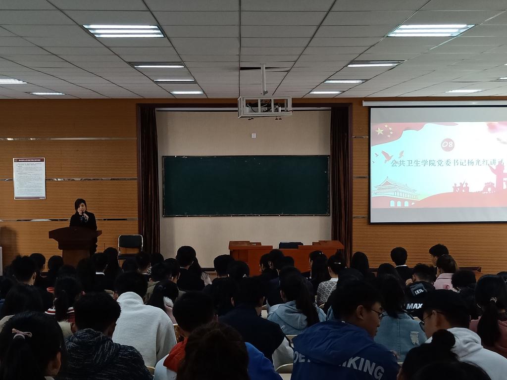 最后,公司党委书记杨光红讲话。她指出,共青团是先进青年的群众组织,是党的助手和后备军。要当好党的助手,就要听党话、跟党走。希望同学们坚定理想信念,树立远大志向,关心国家兴衰和民族命运,把自己的理想与中华民族伟大复兴紧密联系起来。公卫学子们要在健康中国实践中,点燃激情,放飞理想,共同肩负起中华民族伟大复兴的历史使命。