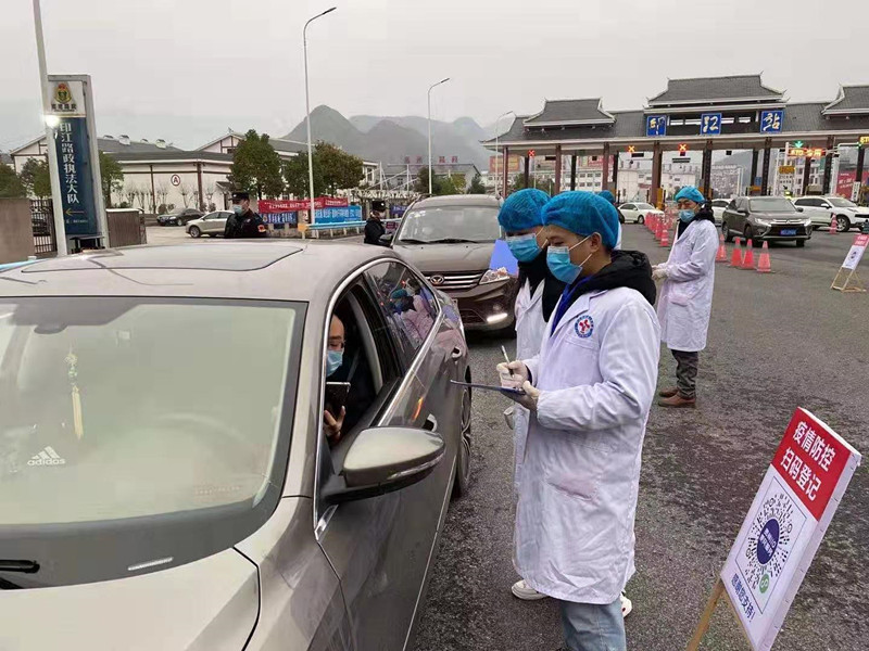 预防医学专业2015级任广廷同学、2017级田茂松同学已经顶着寒风分别在贵州省铜仁市印江县G56杭瑞高速出入口、贵州省思南县青杠坡镇袁家坝加油站附近高速路口的疫情检查点服务近一周的时间,主要的工作是协助对过往车辆进行疫情排查。