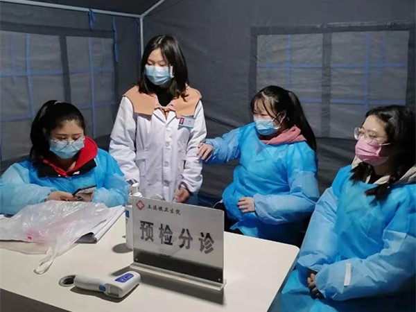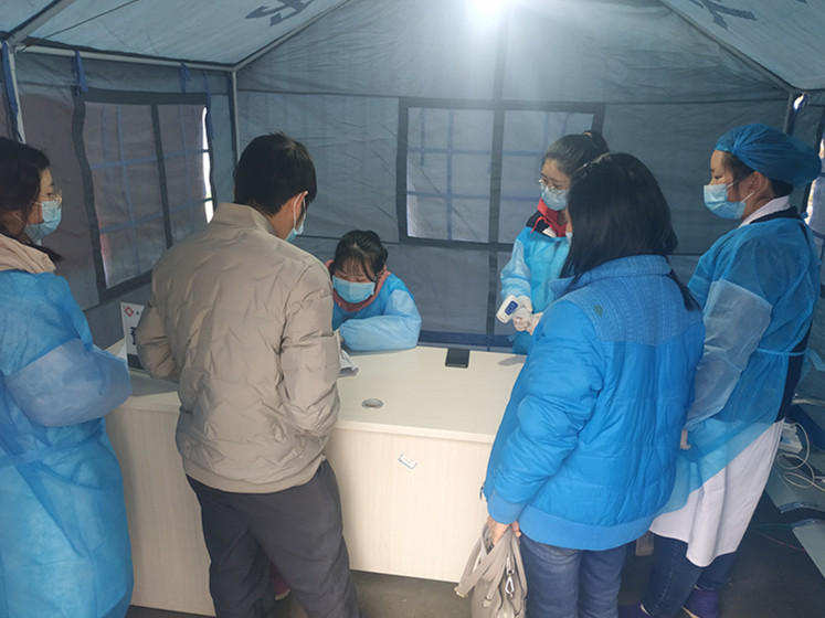 2月1日来到抗疫志愿服务岗位的王娜同学,来自​2016级预防医学专业。她的工作内容是负责在遵义市凤冈县土溪镇卫生院门口对进入医院的病患进行个人信息和体温的登记,再将有接触史、发热的人送到发热门诊进行确诊的预诊分诊工作。目前进出卫生院的人数较多,难免会有人情绪波动,尽管如此,王娜和她的志愿者伙伴们仍耐心安抚群众的情绪,一丝不苟地进行体温测量和登记。“要对自己的工作负责,对大家负责”,王娜笑着解释道。
