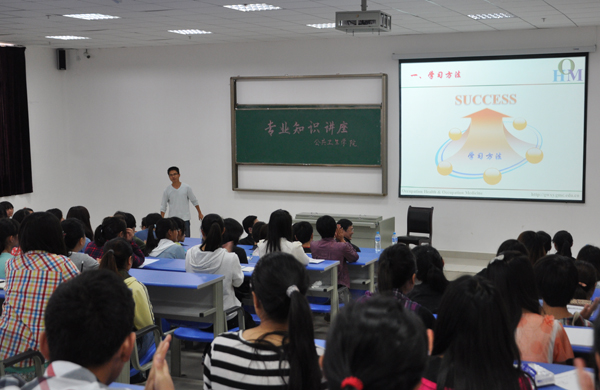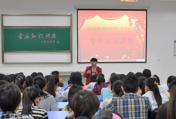 副经理洪峰教授作了题为《专业发展现状与就业》的讲座。他从阐述“公共卫生”、“预防医学”、“卫生检验与检疫”的概念开始,给同学们系统的分析了当前我国公共卫生与预防医学学科面临的挑战和机遇,鼓励同学们勤学好问,学好专业。宋沈超教授以《贵州省疾控机构人力资源现况》为题,向同学们介绍了贵州省内各级疾控机构当前人力资源构成现状、面临问题以及迫切需要的专业人才情况,鼓励同学们努力学好专业知识,投身贵州省疾控事业;曾奇兵老师就学习方法、考研经验和同学们作了互动,随后张经理、赵处长、张书记、杨书记分别对同学们提出了宝贵的意见和殷切的期望。