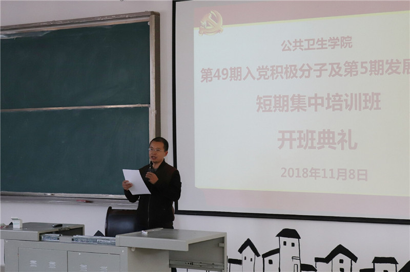 杨光红向全体学员表示热烈的欢迎并做动员讲话。首先对牟佳龄同学的发言和表态给予了充分肯定。随后,结合实例和亲身经历,告诉同学们中国共产党带领中国人民从站起来、富起来到强起来的伟大飞跃和为人民生活带来的翻天覆地的改变。同时对同学们提出了三点要求:一是要以此次学习为新的起点,继续加强党性修养,提高理论水平;二是要在学习上做好表率,学好专业知识;三是要时刻以党员的标准来严格要求自己,通过自己不断的学习和努力,争取早日加入中国共产党。