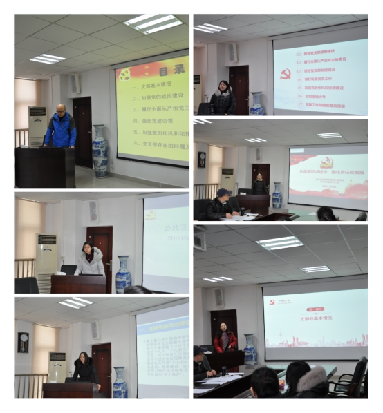 会上,教工第一党支部副书记陈峰峰、教工第二党支部书记潘莎、教工第三党支部书记王柱红、员工第一党支部书记郝雪君、员工第二党支部书记周洪媛、研究生党支部书记张燕依次上台述职,从抓好党支部思想建设、履行全面从严治党主体责任、抓好党支部制度建设、做好发展党员工作、加强党的作风和纪律建设、党支部上年度党建工作中问题的整改情况等方面进行现场报告,深入查摆剖析支部党建工作中存在的问题,并提出下一步加强和改进支部党建工作的思路和措施。