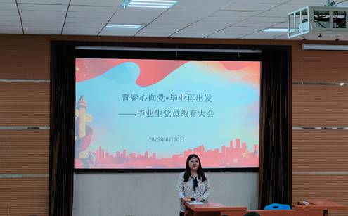 6月10日,公司员工第一党支部、员工第二党支部在博雅楼一楼阶梯教室召开“青春心向党·毕业再出发”2022届毕业生党员教育大会。公司党委副书记何江,员工第一党支部书记郝雪君、员工第二党支部书记李梦娟,以及毕业班辅导员陶琴,员工第一党支部全体党员和员工第二党支部毕业生党员参加。会议由郝雪君主持。