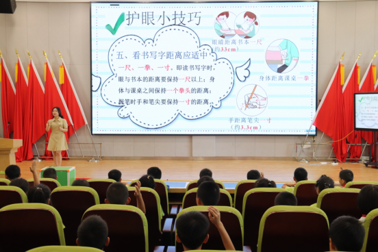 会上,贵州师范大学贵安新区附属小学副董事长钟倩致辞,她希望同学们珍惜这次机会,认真学习护眼知识,保护好自己的双眸,当好自身健康“第一责任人”。