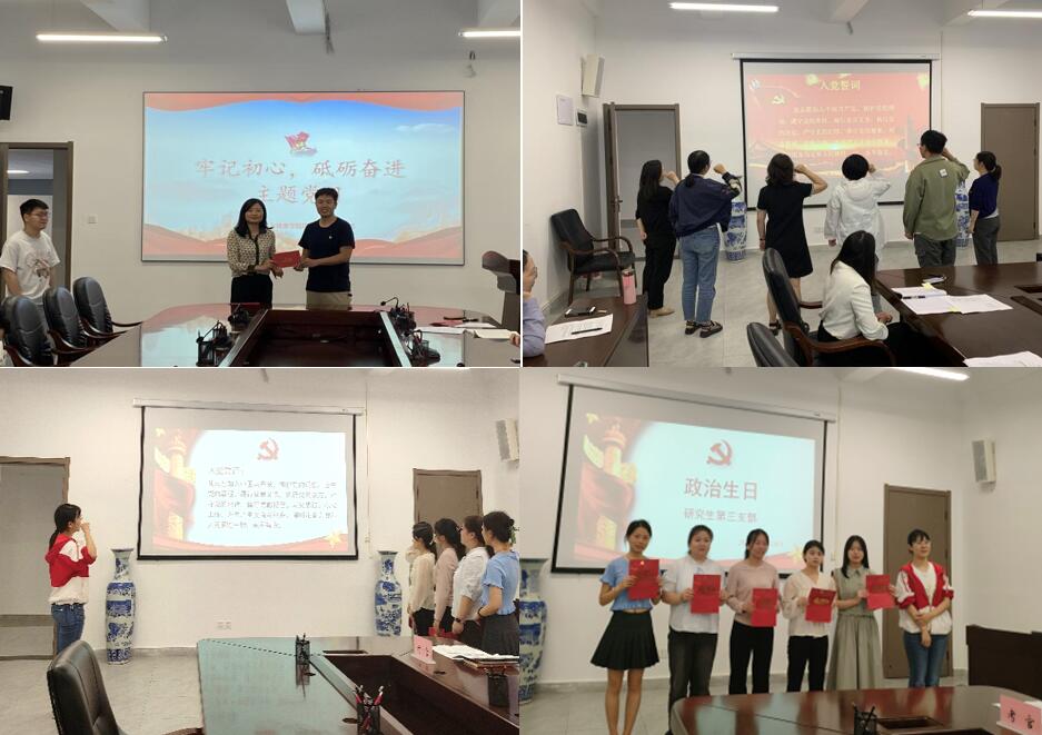教工第一、第二党支部、研究生第一、第三党支部分别开展了同过“政治生日”主题党日活动,组织党员集体过“政治生日”,通过面向党旗重温入党誓词、集体忆初心、分享入党所思所想、赠送“政治生日”纪念卡等方式,引导党员时刻牢记入党誓词,自觉遵守党章党规,进一步淬炼自身的党性修养、砥砺初心使命。